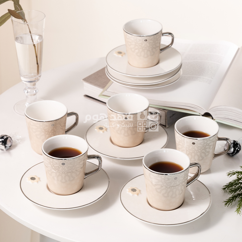 طقم 6 فناجين شاي اصالة 2543 كريمي