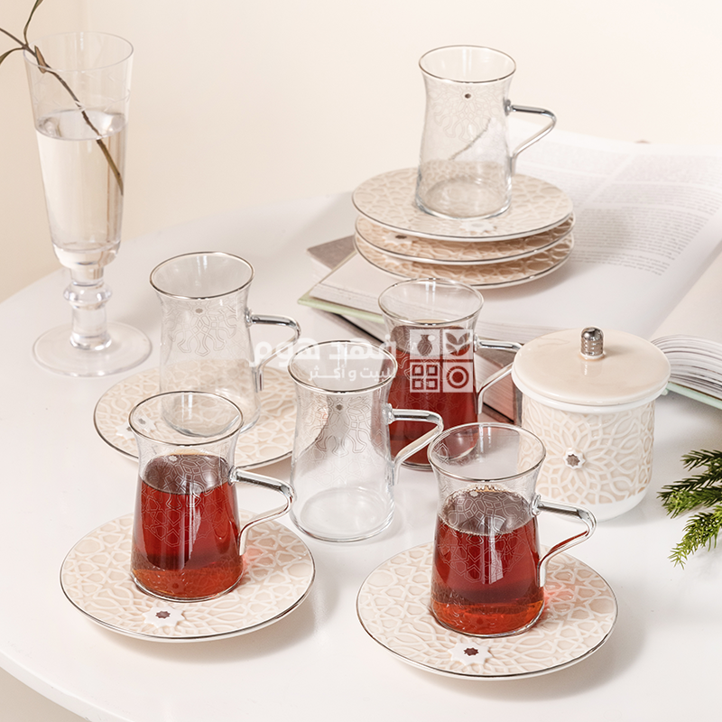 طقم استكانة 14 قطعة اصالة 2555 كريمي