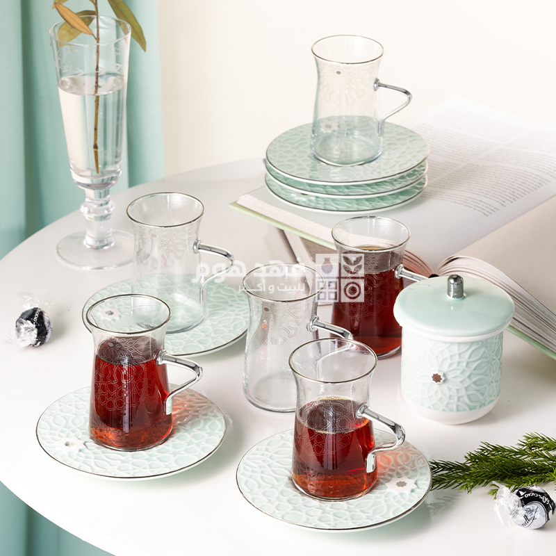 طقم استكانة 14 قطعة اصالة 2554 فيروزي