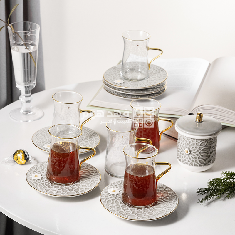 طقم استكانة 14 قطعة اصالة 2553 رمادي